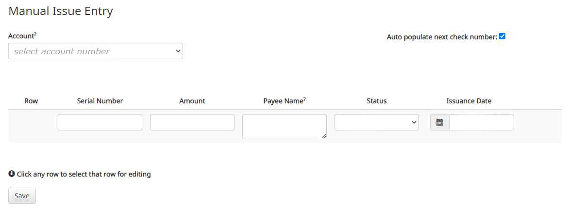 - Always save issued check files in CSV format before uploading