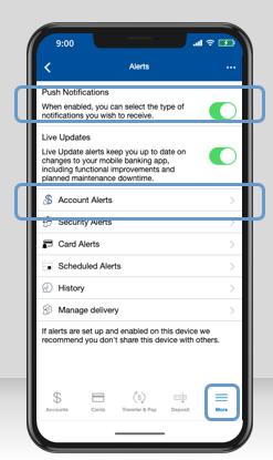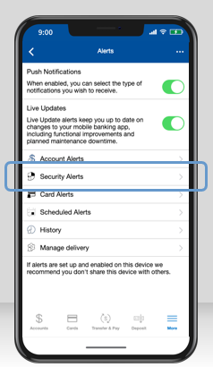 Tap on the alert(s) you want to receive and set any necessary parameters. These settings will save automatically once set.